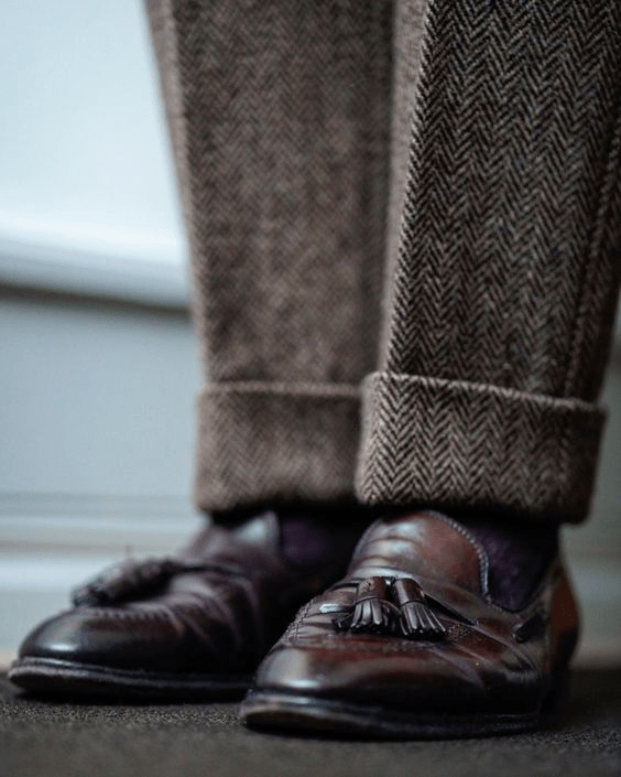 Because the fabric is quite thick, tailored tweed garments reject the flat, lifeless features found on many of today’s jackets and trousers. The lapel roll will naturally carry some oomph factor. The added weight will allow the hem of the pants to drape more gracefully over the shoes. And so on.