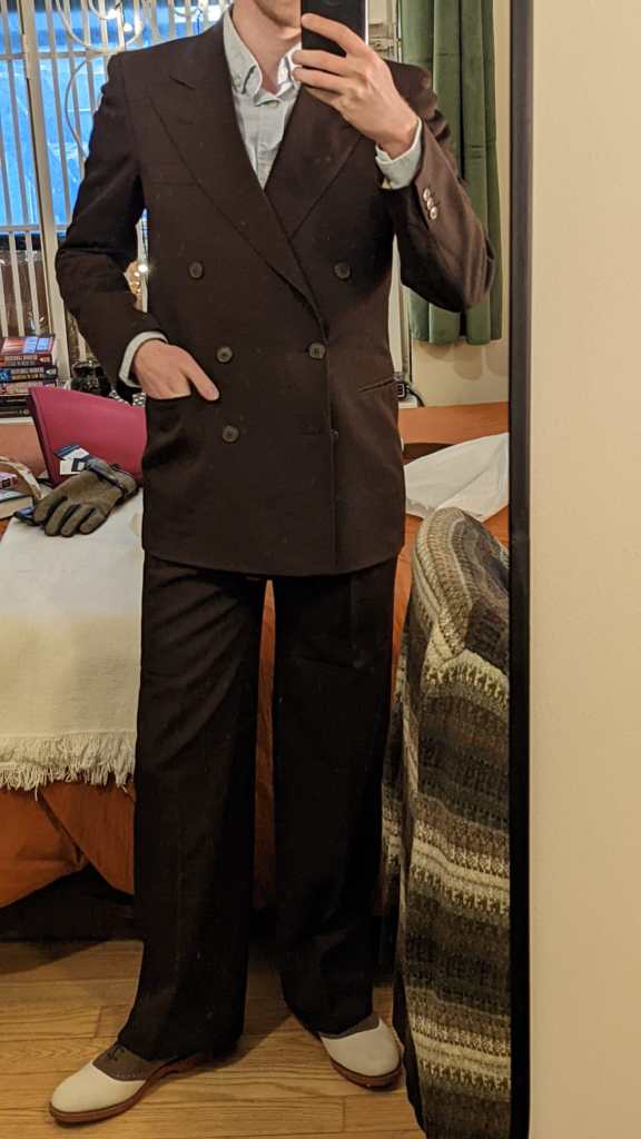 I was very lucky to score this brown DB suit from… you guessed it – the 1970s.