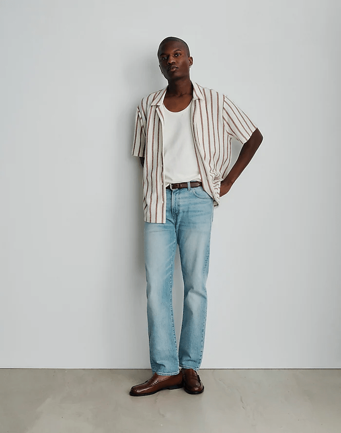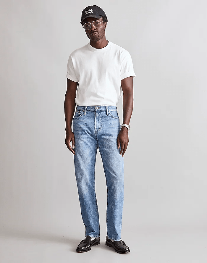I really like the relaxed look of The 1991 Straight-Leg Jeans by Madewell Men’s. And their light-wash variations are incredibly tasteful, in my opinion. Here’s a pair in their Becklow Wash that I dig.