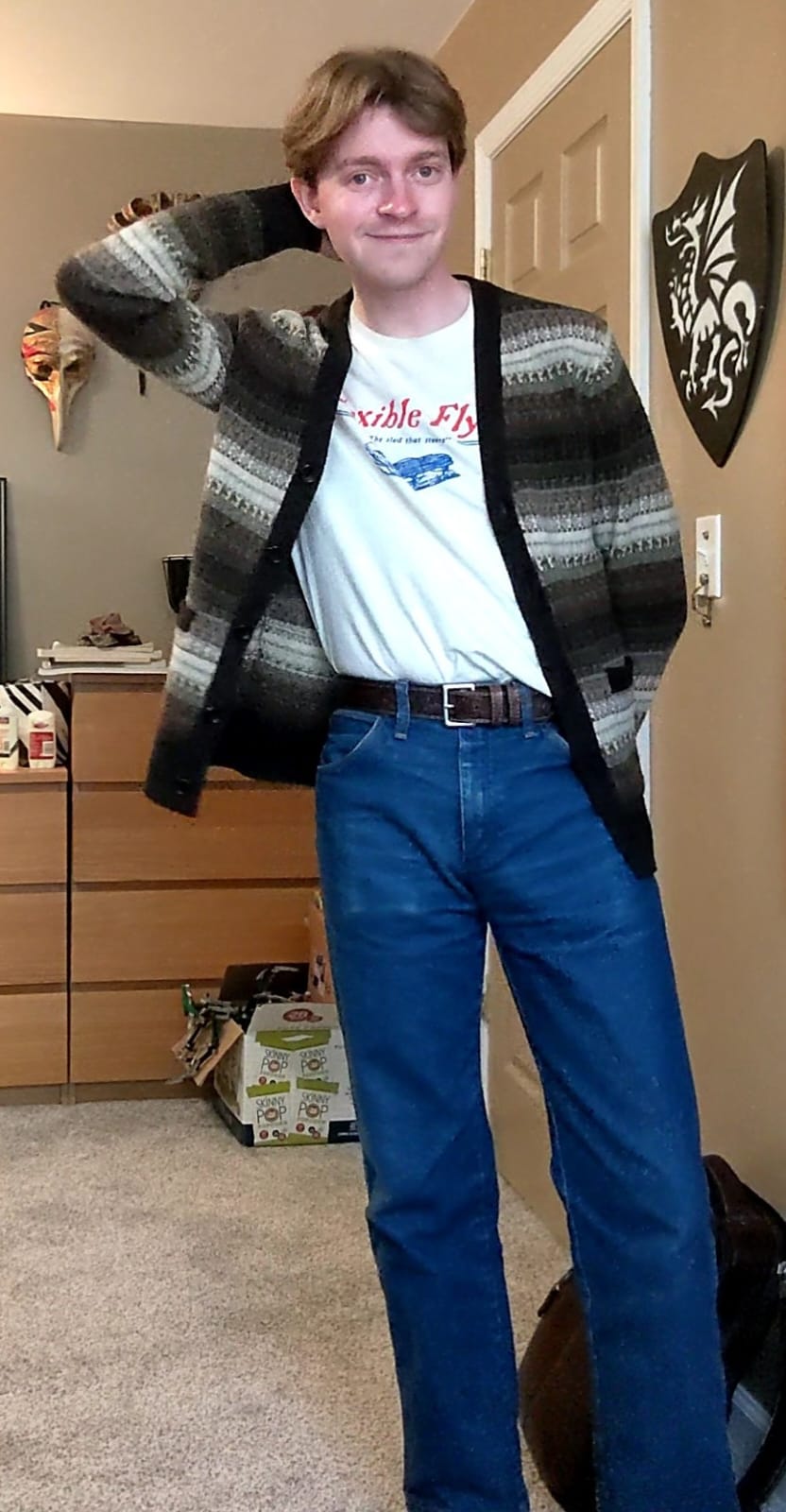 Well, more specifically, I wear one, singular pair of jeans. Those would be the Wrangler 13mwz Cowboy Cut Jeans in Rigid Indigo, purchased a bit over a year ago and washed with disturbing infrequency.