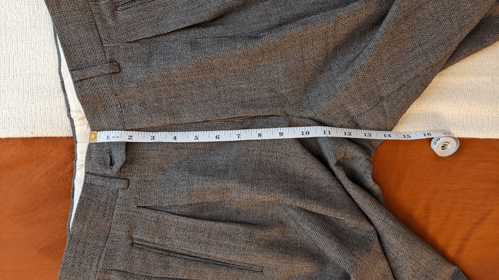 Inseam length: This metric extends from the crotch seam to the end of the pant leg, at the opening. Pants can always be hemmed shorter, but letting them out to be longer will depend on how much fabric exists under the existing hem. It can pay to ask eBay sellers about this, as they won’t always specify in a listing.