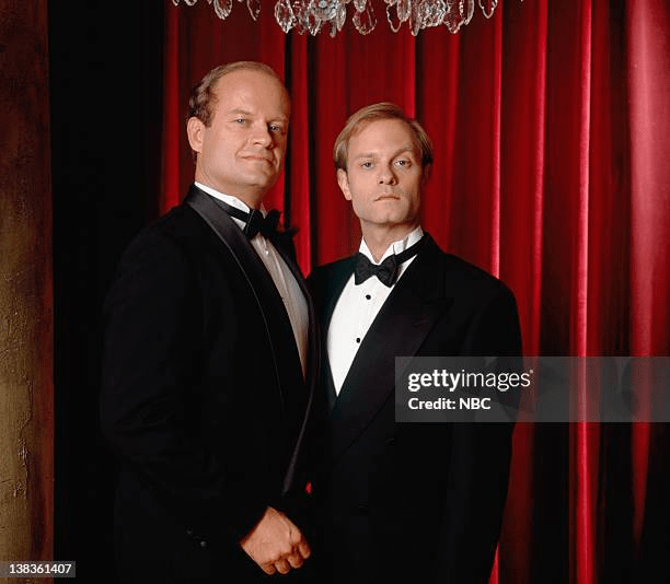 The thing is, the Crane boys are high-society nerds who frequently attend galas, award shows, and the opera – and they wear black tie attire very well, I might add. Niles almost exclusively wears double-breasted suits on the show, so it makes sense that he sports a DB tux as well.