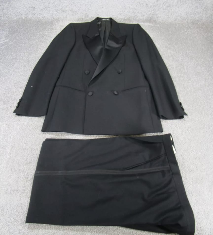 It was a vintage Mani by Giorgio Armani Tuxedo in my size. Well, technically my size – it was a 36 regular, but it was double-breasted, which is my favorite type of jacket style (real Sully fans know this), and which in my opinion, looks neat when a bit longer than a single-breasted jacket.
