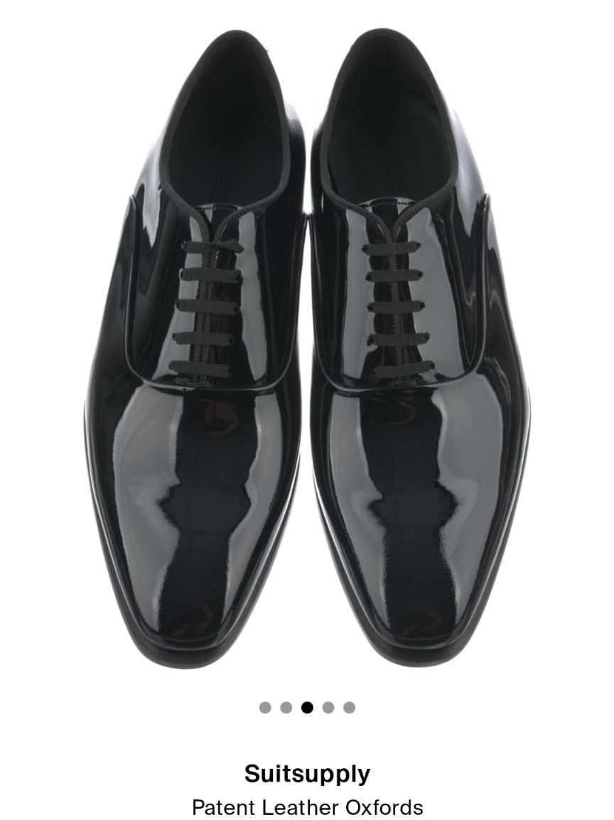 After some searching and deliberation, I purchased a nice pair of patent leather oxford shoes from SUITSUPPLY from The RealReal.