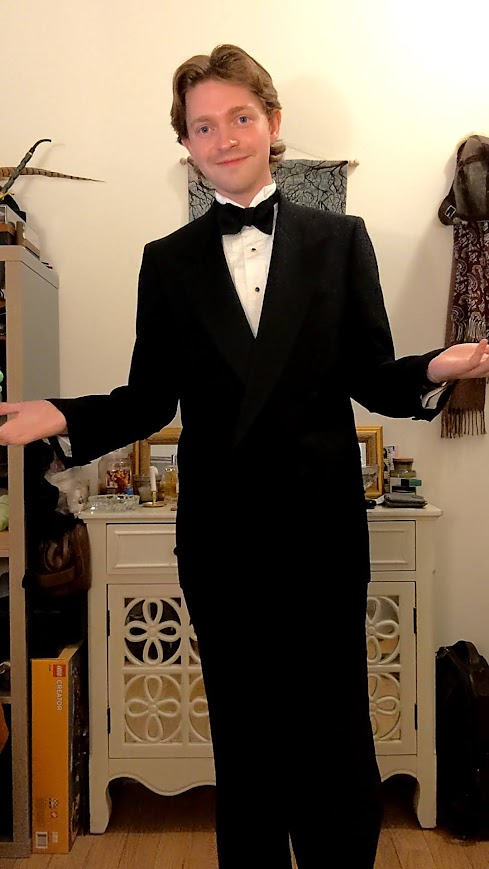 When I spotted the Mani tux on eBay, I was around season 2 of Frasier. Seeing Niles in his DB tux certainly influenced my decision to buy the damn thing. After all, it’s fun to lean into a muse! I AM LITERALLY NILES!!! WHY, YES, I WOULD LIKE SOME SHERRY, FRASIER!