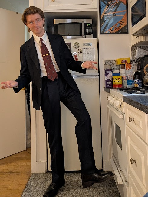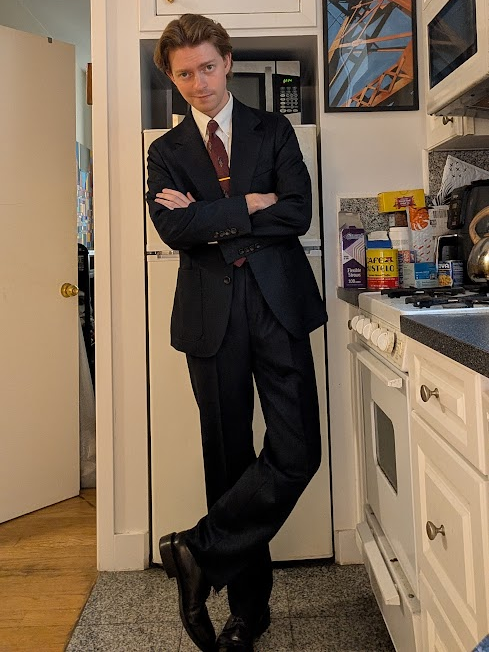 My other navy suit does technically qualify – but I would rather be drawn and quartered at Union Square than be seen wearing it. It’s a shitty polyester thing, something I bought in college for $100 on Amazon (shudder) and currently resides in a bin tucked away under my bed, awaiting eventual disposal or donation.