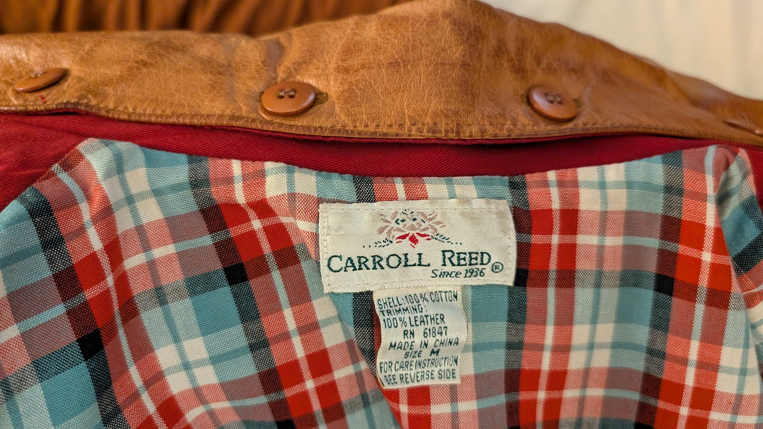 Interestingly enough, this one is a women’s jacket (ironically being sold at an exclusively menswear market), as indicated by the buttons being on the wearer’s left side as opposed to the right. It’s from the now-defunct classic catalog brand Carroll Reed, and features a supple, soft leather collar that’s fully detachable, as well as a lovely plaid lining.